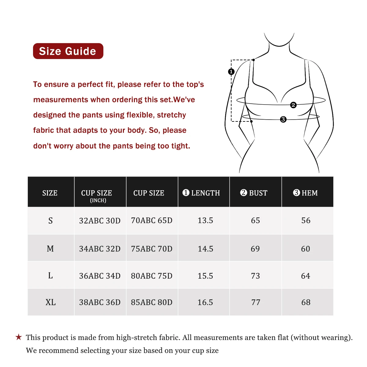 Caro comprador Se precisar de calças e roupas de tamanhos diferentes, entre em contato conosco em particular. Por exemplo, a blusa deve ser S e a calça deve ser M.